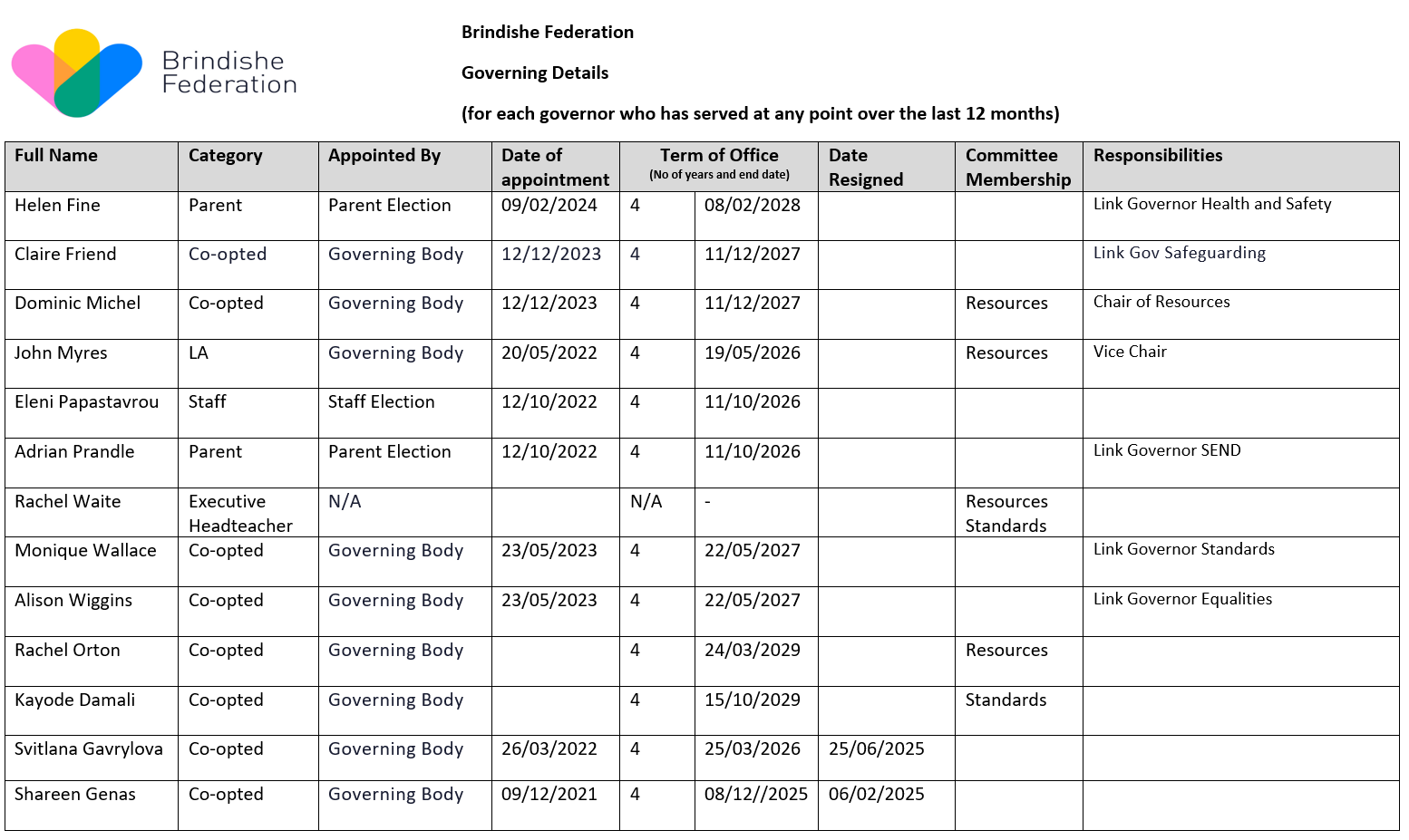 Governors’ details (for each governor who has served at any point over the past 12 months)